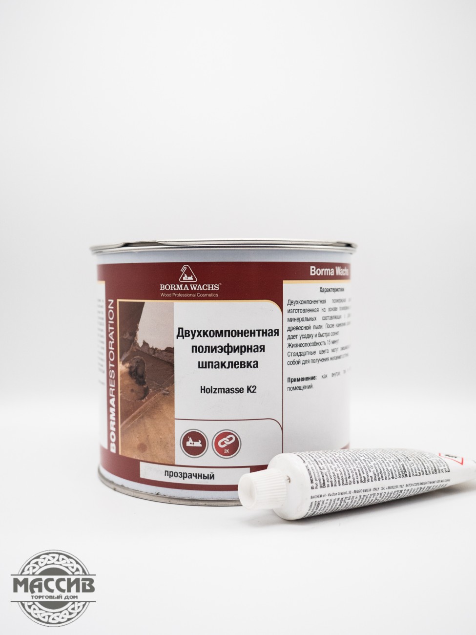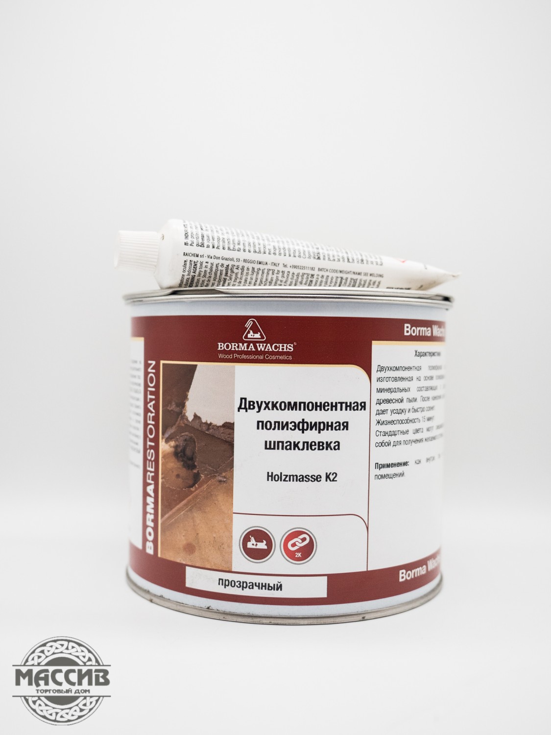 Шпаклевка полиэфирная Holzmasse 2K прозрачная 750мл