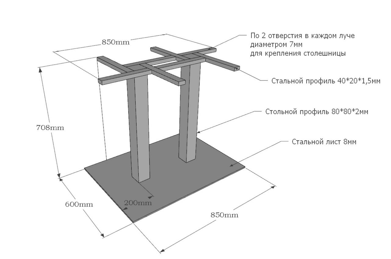 Стильное подстолье из стальных листов и профилей. Замечательно смотрится как в домашнем интерьере, так и в ресторанах/кафе.
